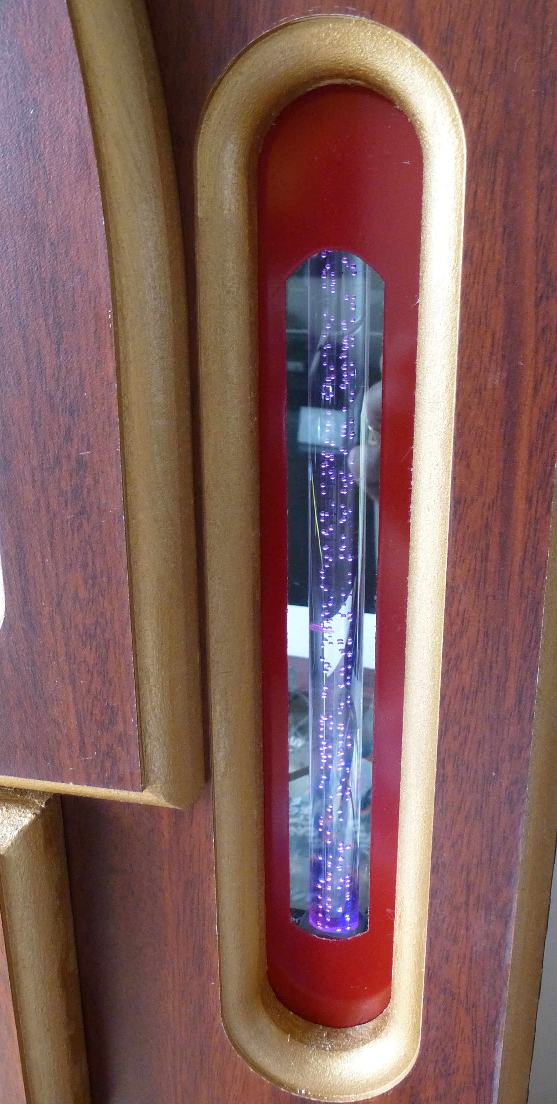 I have since made new plastics and mounted 4 Mini LED bubble tubes behind them ( pics 3 to 7). I have painted the highlights & surrounds antique gold (pics 8 & 9)... Now for the Interior, The touch screen is ready to mount & the MDF for the speakers is cut to size. Speakers have been temporarily fitted to complete wiring.