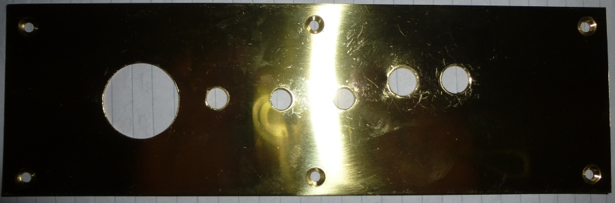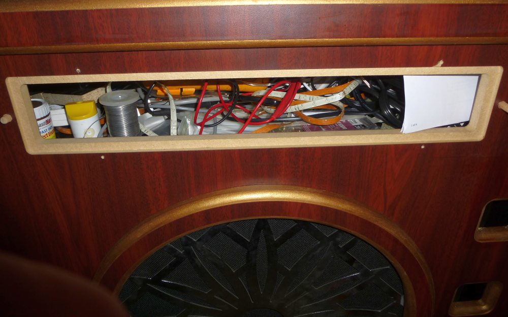 I Brought a new AMP from EBAY not as good but will do (for now) & re-used the speakers from the the blown amp system. (see below) Anyway, I had to manufacture a new face plate to mount the controls on the side. Decided on brass, but it's really expensive in sheet form, so I found a door push plate from DIY store which is Ideal thickness & perfect width. (see picture of the drilled item) I found a printer paper that you can print your own Lithographs on, (Lettresett) Which I scaled & printed, then water transferred on the the brass plate & then used a cellulose lacquer car spray to seal it. The name was important as I wanted something different from what it was called. So WURLOZZA JUKEBOX it is, a tribute to the Wurlitzer Jukeboxes (I still want one) & a play on my name.